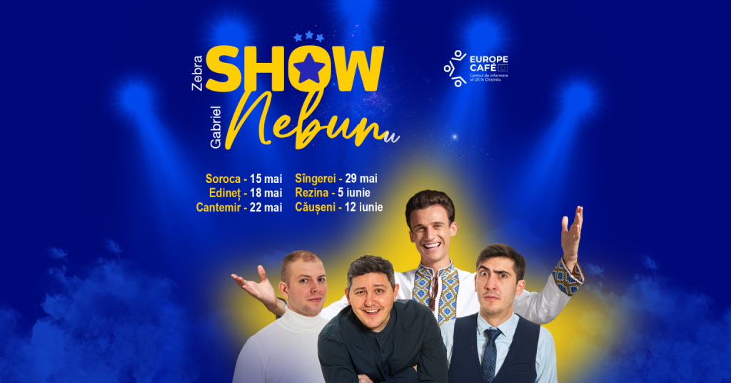 Европейский Союз приближается старается стать ближе к людям и приглашает на развлекательное и интерактивное мероприятие! В мае – июне Караван ЕС в Молдове будет ездить по стране, а начнет он свой путь с мероприятия Show Nebun — уникального формата коммуникации и развлечения, призванного донести проевропейские месседжи в местные сообщества, причем сделать это искренне и с долей юмора в ходе прямого общения с гражданами.