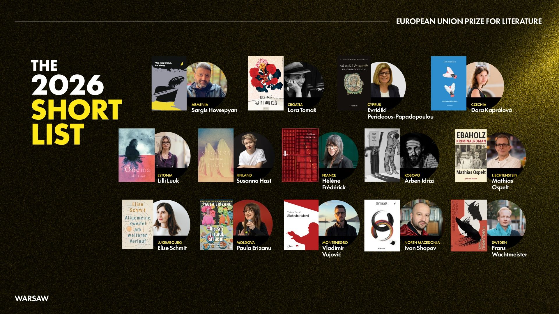 Фабиан Паагман, президент EIBF, сказал: «EUPL по-прежнему остается маяком литературного совершенства, прославляя яркое разнообразие европейского повествования. В этом году в шорт-лист вошли 14 выдающихся авторов, представляющих лучшее из современной художественной литературы со всего континента, каждый из которых предлагает свой уникальный голос и точку зрения. Вскоре жюри объявит двух лауреатов специальных призов и одного абсолютного победителя, но истинным достижением EUPL является его способность донести эти замечательные произведения до читателей во всем мире, преодолевая традиционные национальные границы и территории. От имени EIBF я поздравляю всех авторов, вошедших в шорт-лист, и с нетерпением жду появления ваших книг на полках, которые будут вдохновлять читателей по всей Европе и за ее пределами».