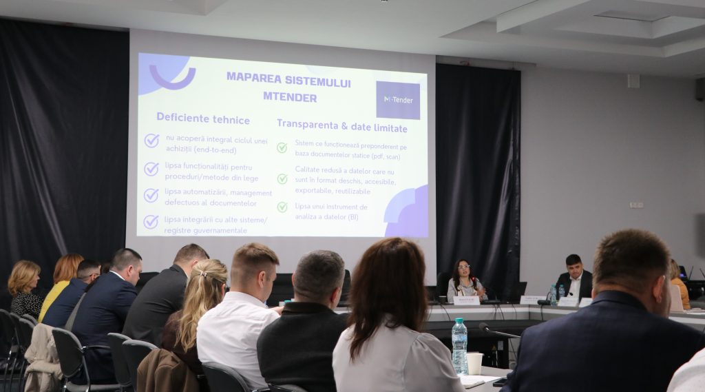 „Analiza evidențiază deficiențe importante ale platformei existente – Mtender, precum: acoperire incompletă a ciclului de achiziție, lipsă de funcționalități conforme legii, utilizare preponderentă a documentelor statice, integrare limitată cu registre guvernamentale, calitate redusă a datelor și absența unui instrument de analiză. Aceste carențe cresc vulnerabilitatea la fraudă, favoritism și practici netransparente, reduc accesul la monitorizare și erodează încrederea în instituții”, a spus Diana Enachi.